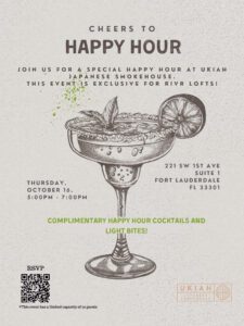 Join us for a special Happy Hour for Rivr Lofts residents at Ukiah Japanese Smokehouse, the newly opened riverfront spot where Japanese soul food meets Southern BBQ, on October 16th from 5-7pm.